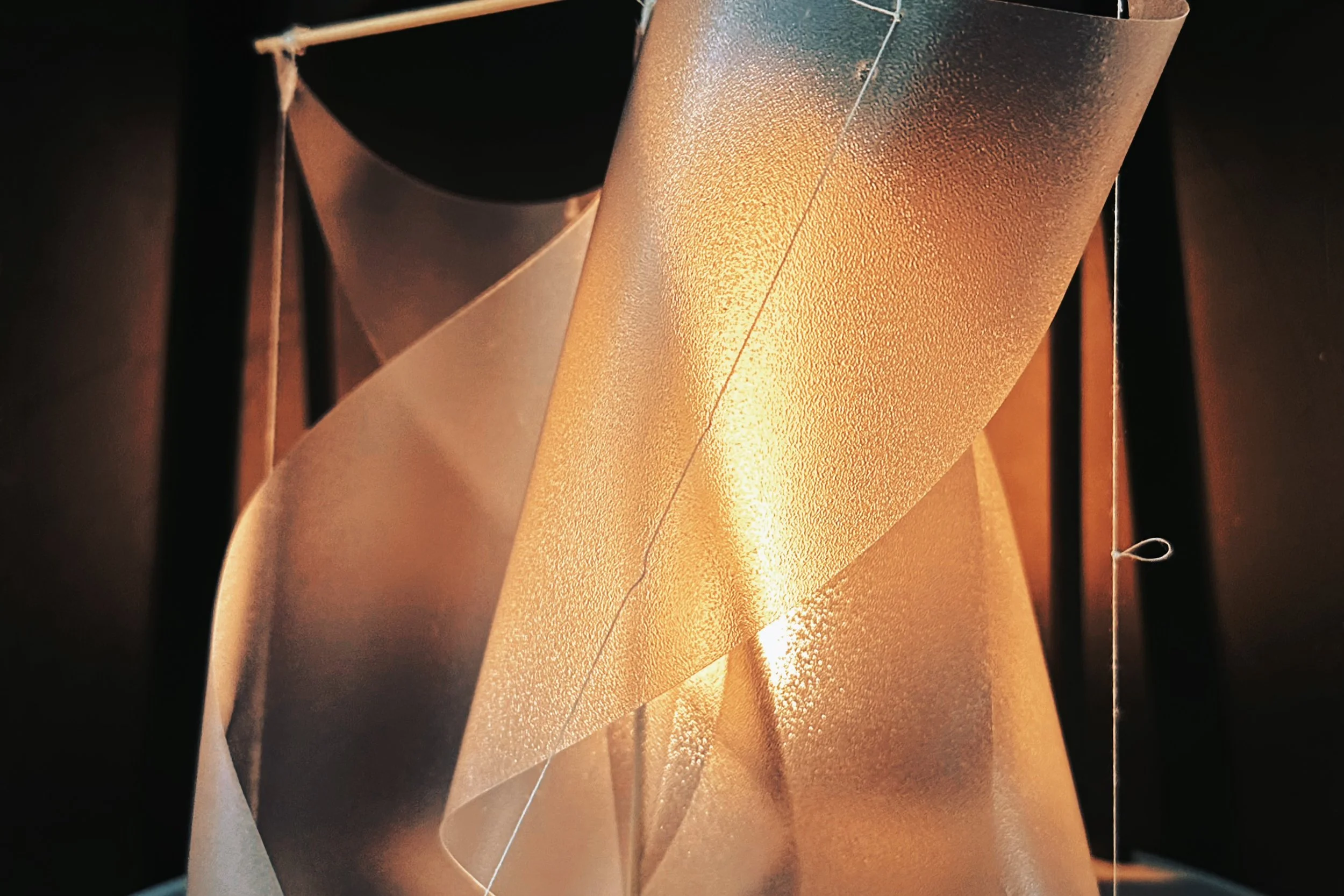 In terms of material and aesthetic exploration, I used frosted plastic, cotton thread, stones, pinwheel-like forms, and light to shape a ritualistic experience. Here, aesthetics functioned as an attitudinal guide, directing experience and feeling.
